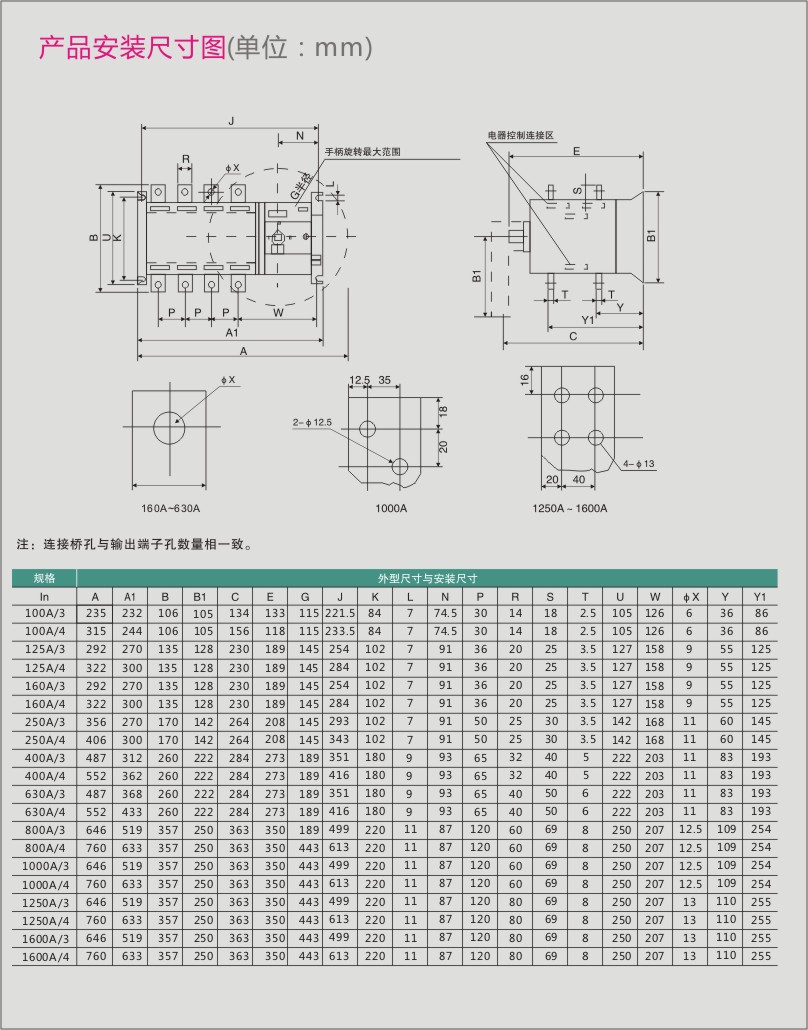 250A、315A、350A、400A、500A、630A、800A 1000A、1250A、1600A、2000A、2500A、3200A